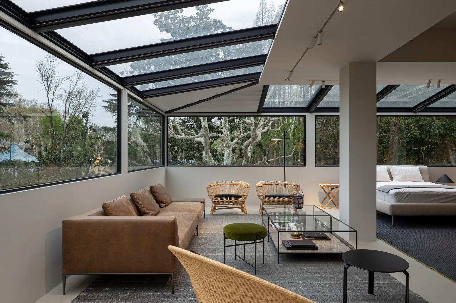 The Boffi | DePadova Fuxing Park Exhibition Hall preserves historical textures, integrating glass curtain walls with minimalist facades. Natural light penetrates the skylights, blurring the boundary between interior and exterior, making the century-old garden's greenery the backdrop of the space — "This is not spatial reconstruction, but the folding of time." In the present of 2025, Fuxing Park remains a spiritual oasis for Shanghai's Gen Z young people. Trendy markets, hand-brewed coffee, skateboarders, and picnic camping interweave new life scenes under the shade of trees, allowing this century-old rose garden to radiate unique vitality in the eyes of the new generation. The presence of Boffi | DePadova responds to this cross-era life imagination with another scale and rhythm — providing a habitable and contemplative spiritual space between history and the contemporary era.
