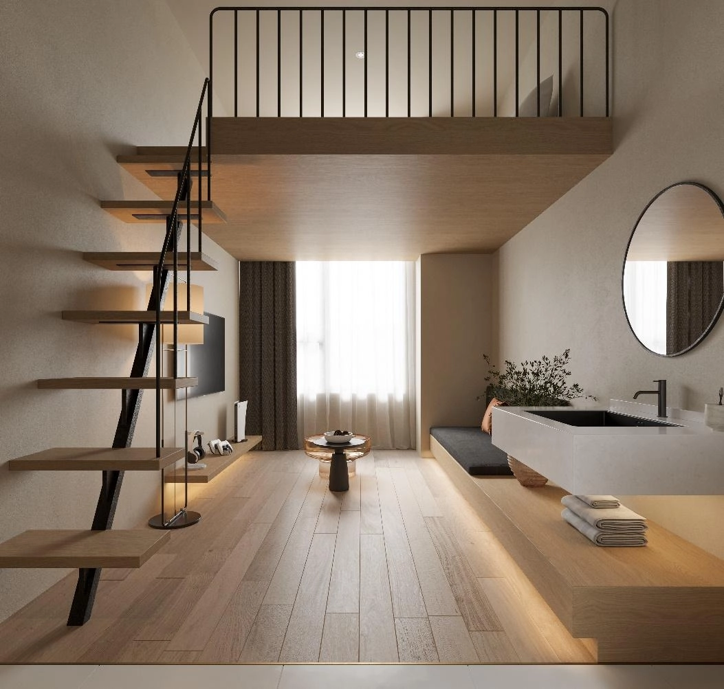 Stillness in Form redefines hospitality through the lens of restrained geometry and sensory balance. The hotel embodies a sculptural simplicity — a symphony of light oak, stone, and soft gray that invites calm introspection.