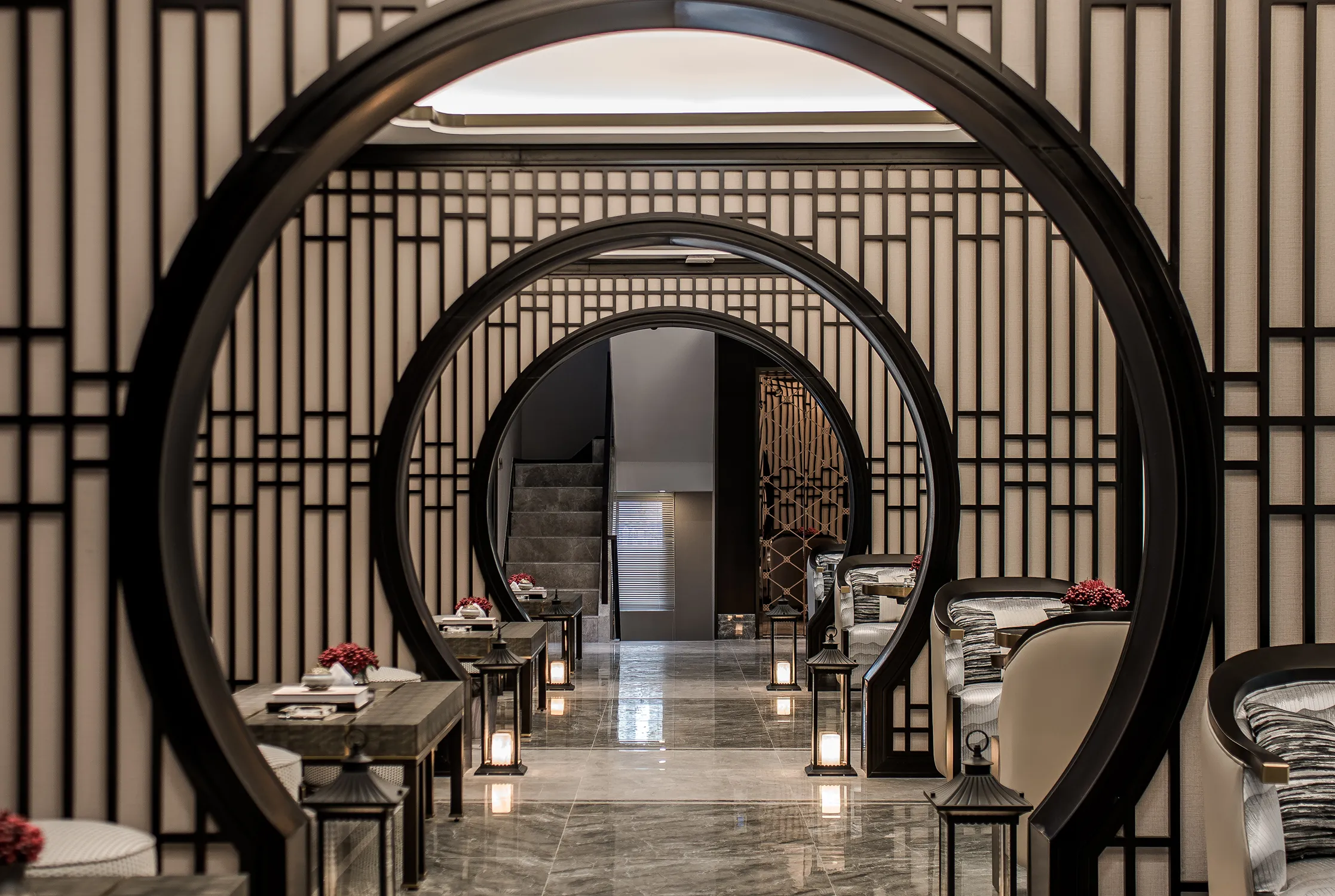 The design of Jingong Taihe Courtyard's marketing center perfectly blends modern luxury with oriental charm, creating a business environment that is both elegant and comfortable. The spacious reception area features marble flooring and exquisite wooden finishes, complemented by custom modern furniture and artistic lighting installations, showcasing a noble and warm atmosphere. The design cleverly incorporates natural elements such as greenery walls and natural lighting, not only beautifying the space but also providing a healthy work environment. Additionally, the combination of traditional art decorations and contemporary art pieces adds cultural depth and an artistic flair to the marketing center.