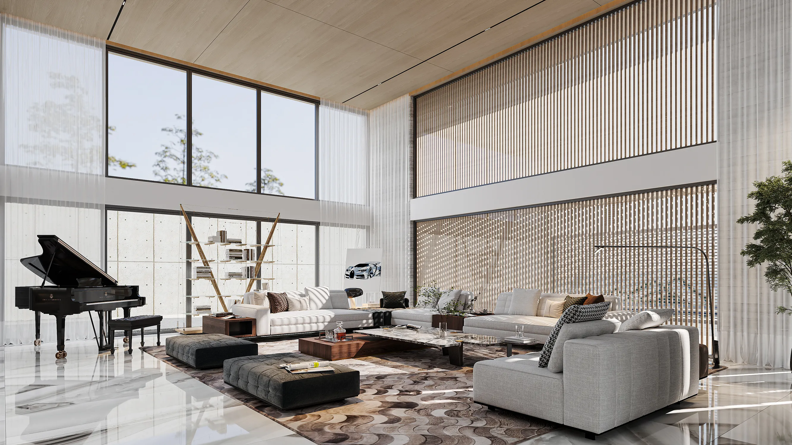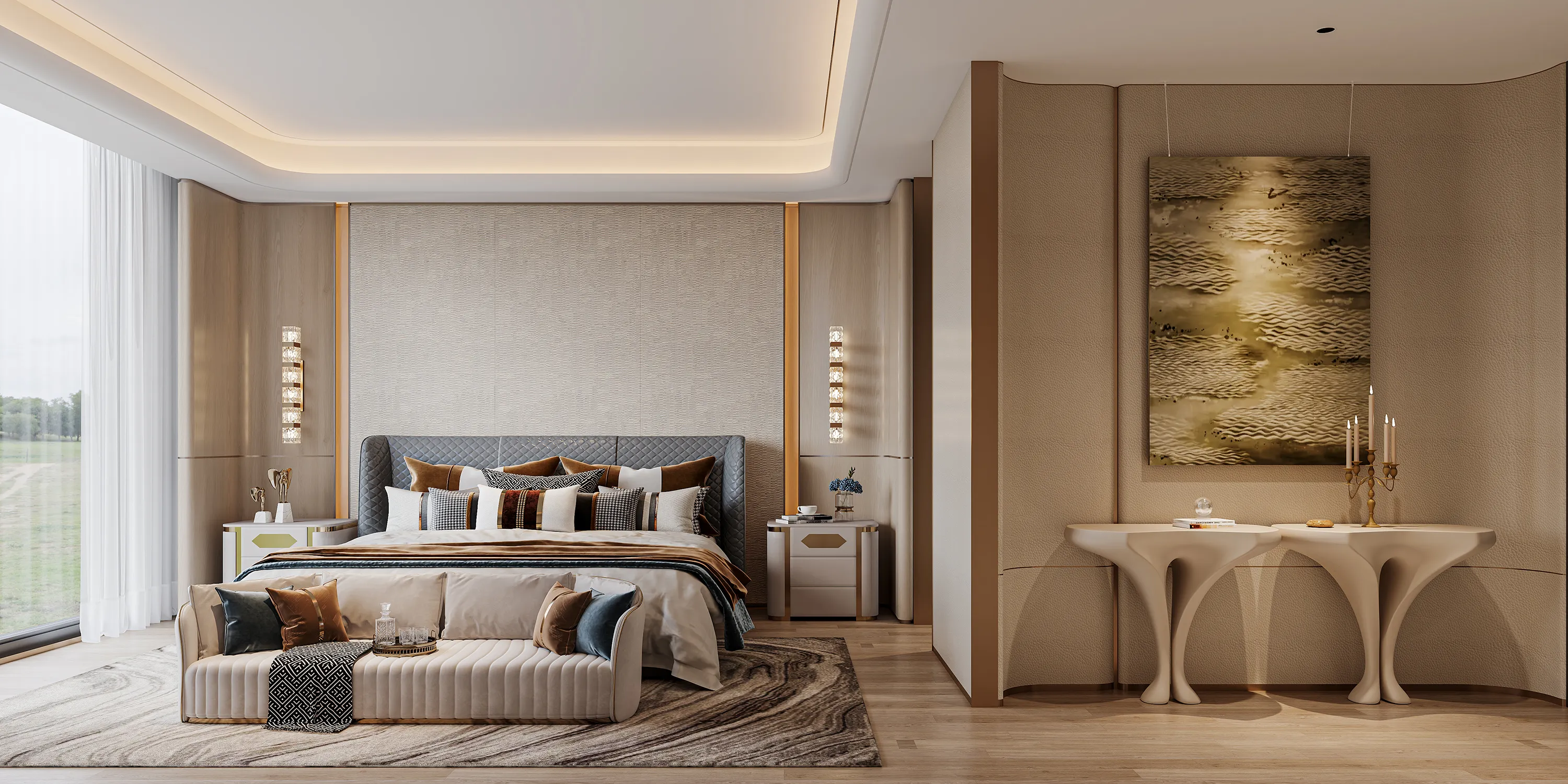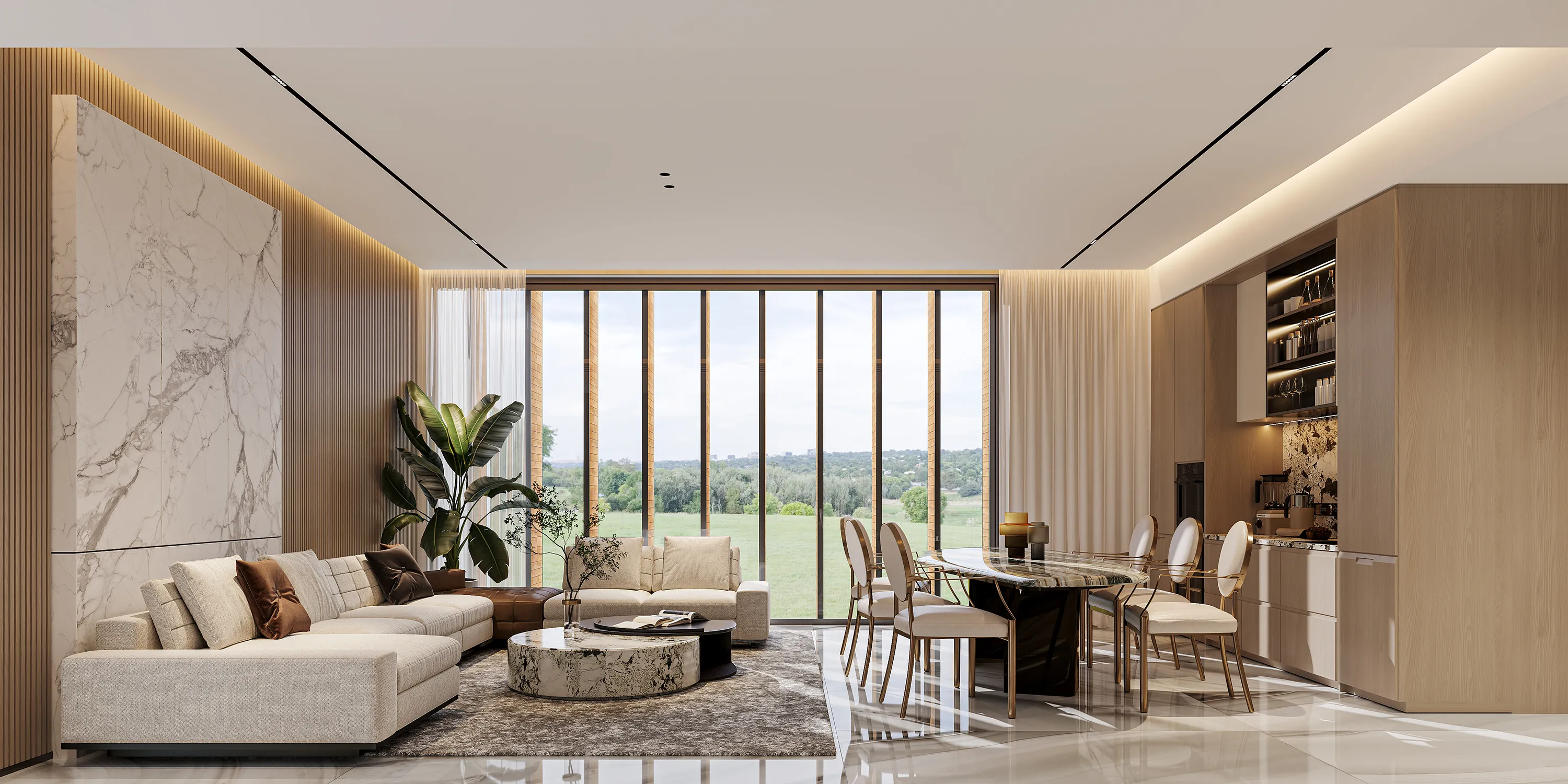 The soft decoration design of this Singapore residence, with a modern luxury style at its core, blends high-end textures with comfortable living. The design incorporates marble and wood elements, complemented by custom furniture and unique lighting designs, creating a modern and cozy living environment. Keywords: Modern Luxury, Marble, Wood Elements, Custom Furniture, Lighting Design.