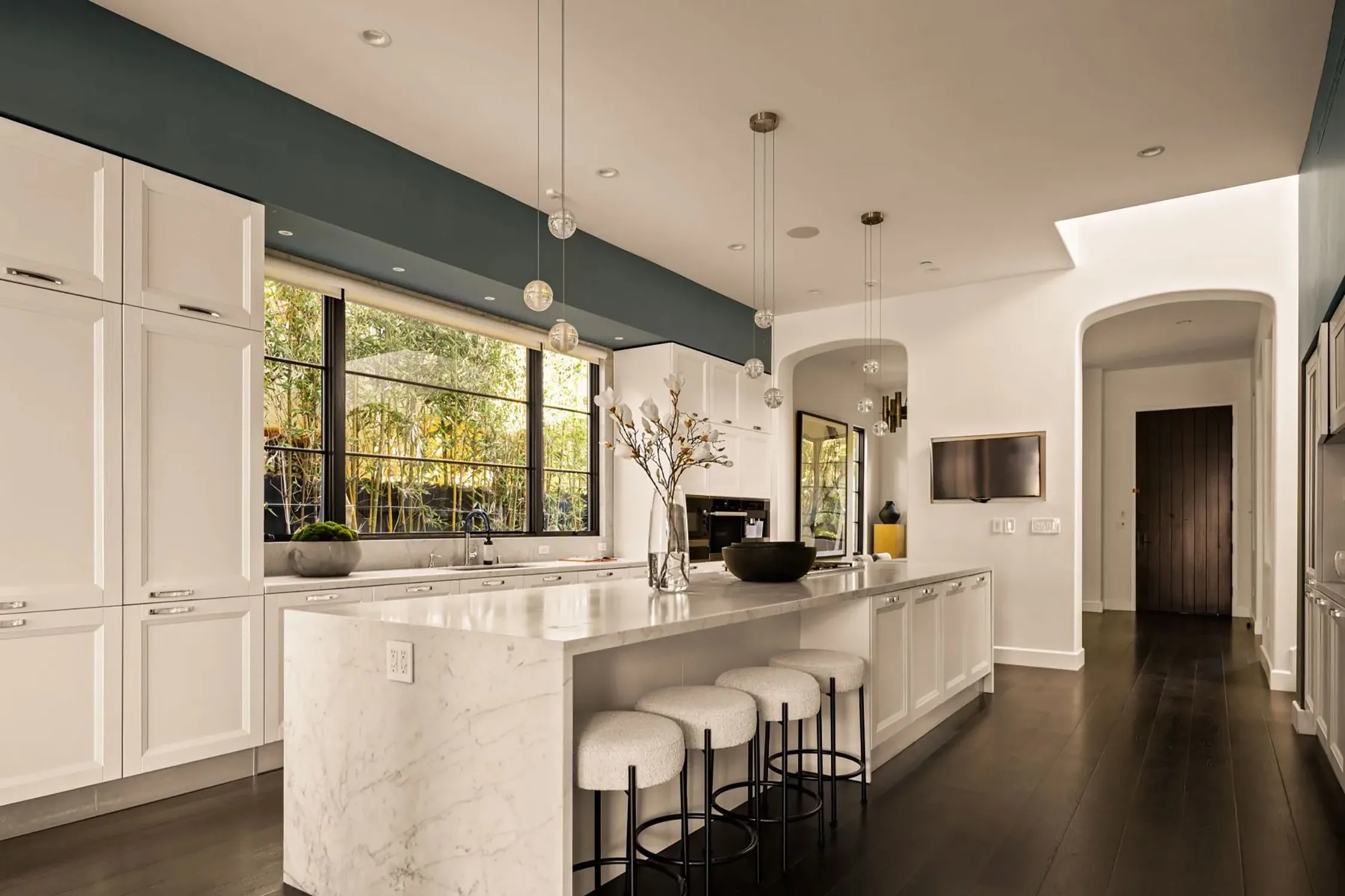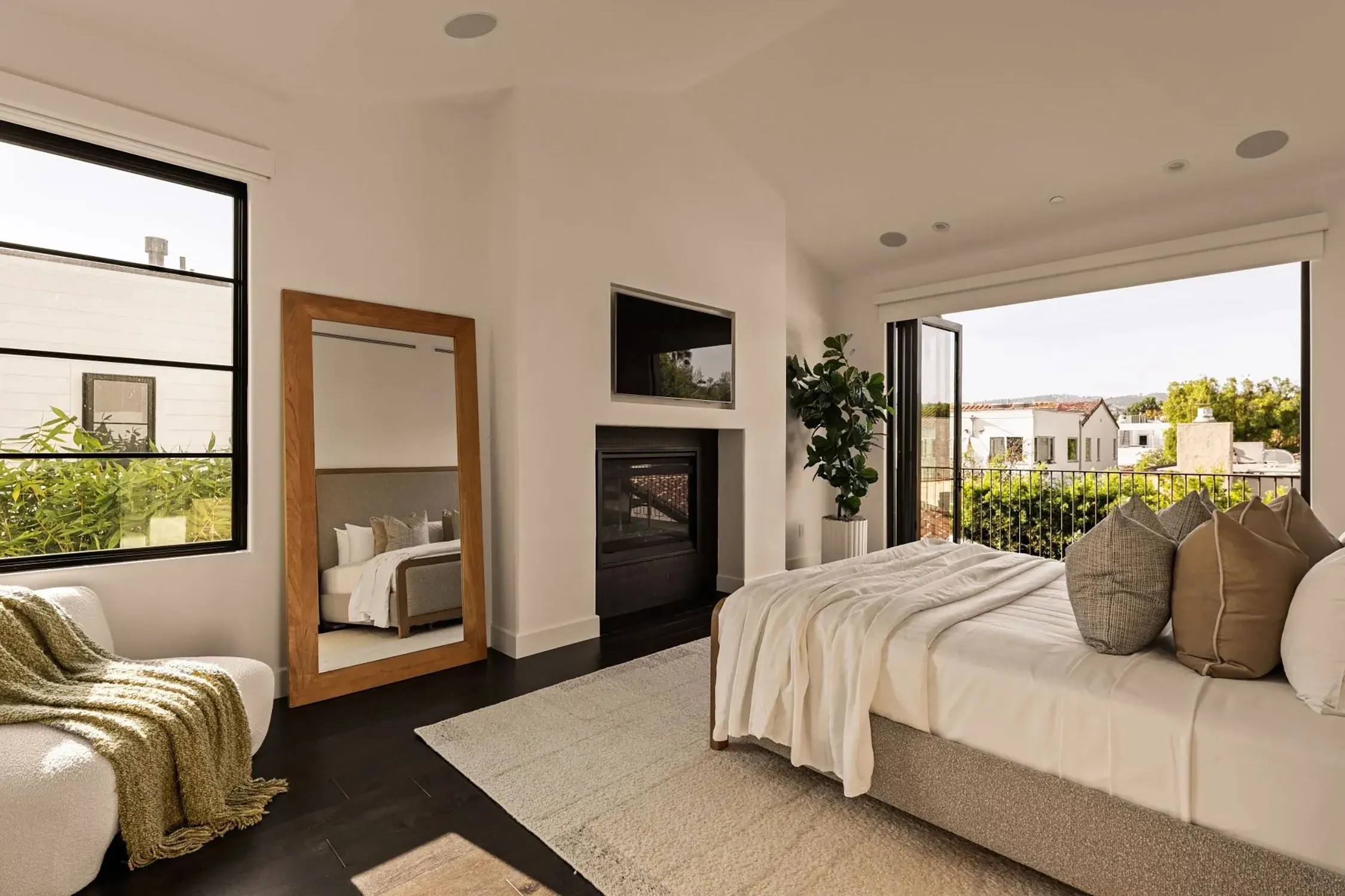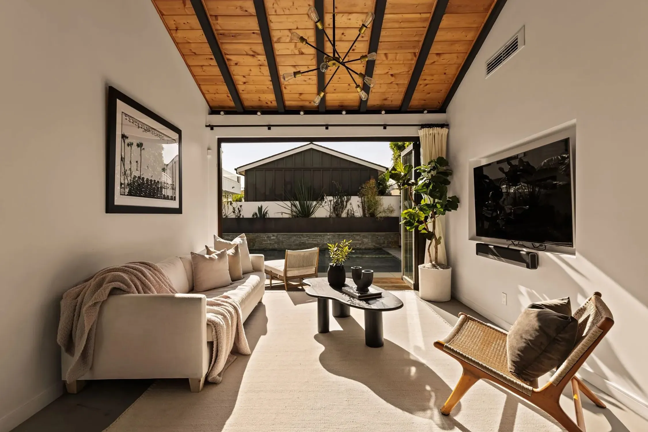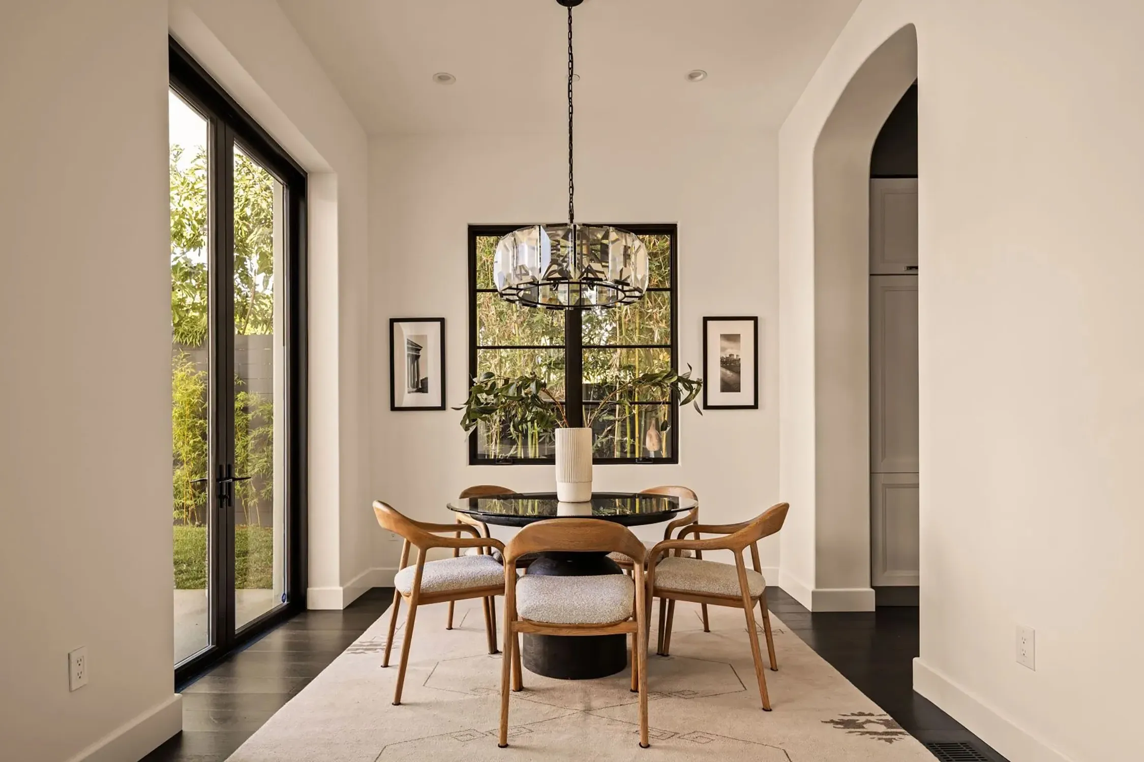 The interior design of this Los Angeles villa blends modern minimalism with natural elements to create a stylish and comfortable living space. The spacious bedroom and living room designs integrate natural light through large windows, harmoniously blending indoor and outdoor spaces. The carefully selected furniture and decorations not only enhance the aesthetic appeal but also reflect the residents' pursuit of quality living. The kitchen and dining area are designed to be simple yet functional, providing convenience and enjoyment for family life.