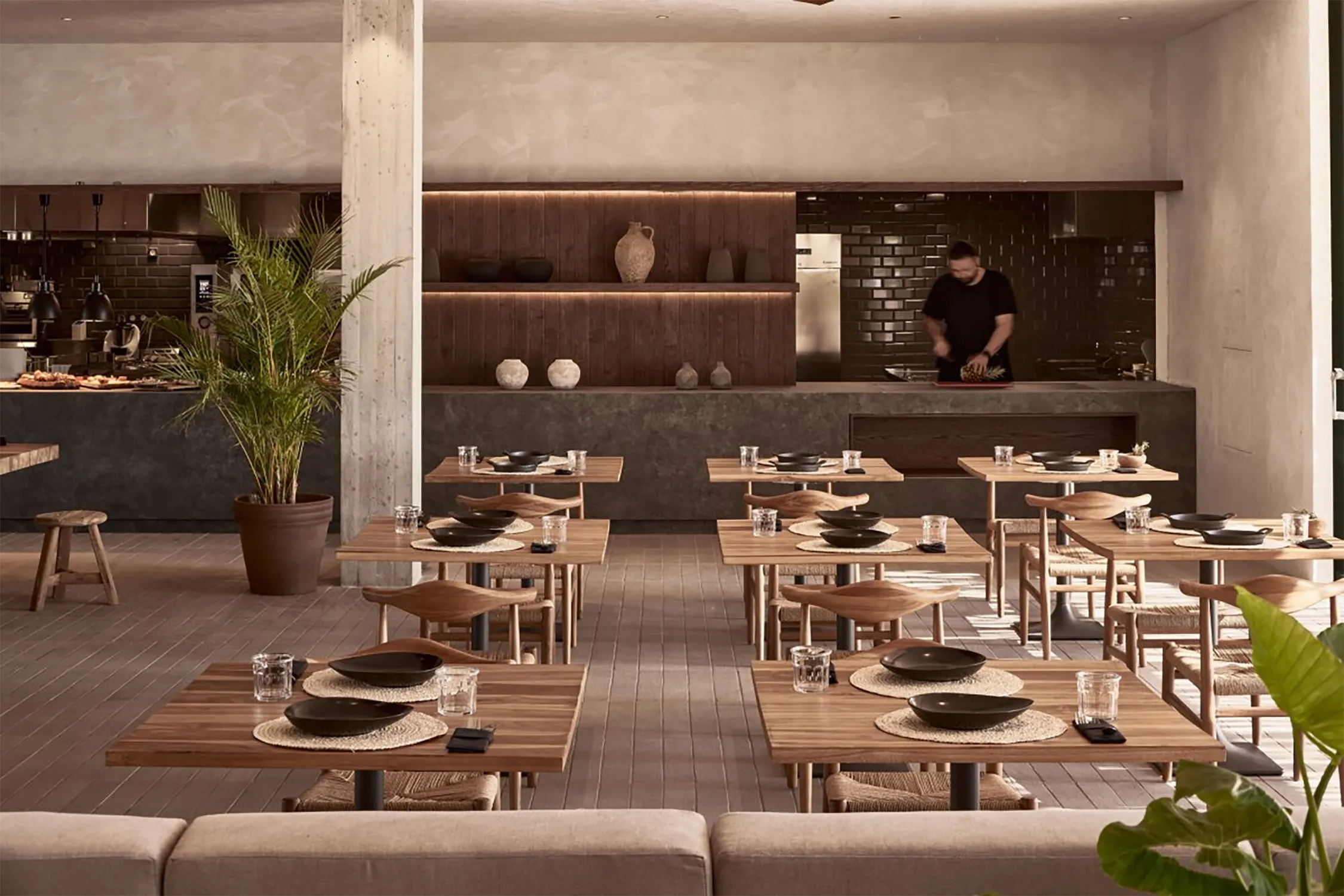 The Wabi-Sabi Hotel is a sanctuary that celebrates the beauty of imperfection and simplicity. The dining area, with its earthy tones and natural materials, offers a warm and inviting atmosphere. The lounge is a perfect blend of comfort and style, with plush seating and subtle decor. Guest rooms are designed with a minimalist approach, featuring cozy beds and serene views. This hotel is not just a place to stay; it's a destination that encourages relaxation and contemplation, where every detail is curated to enhance the guest experience.