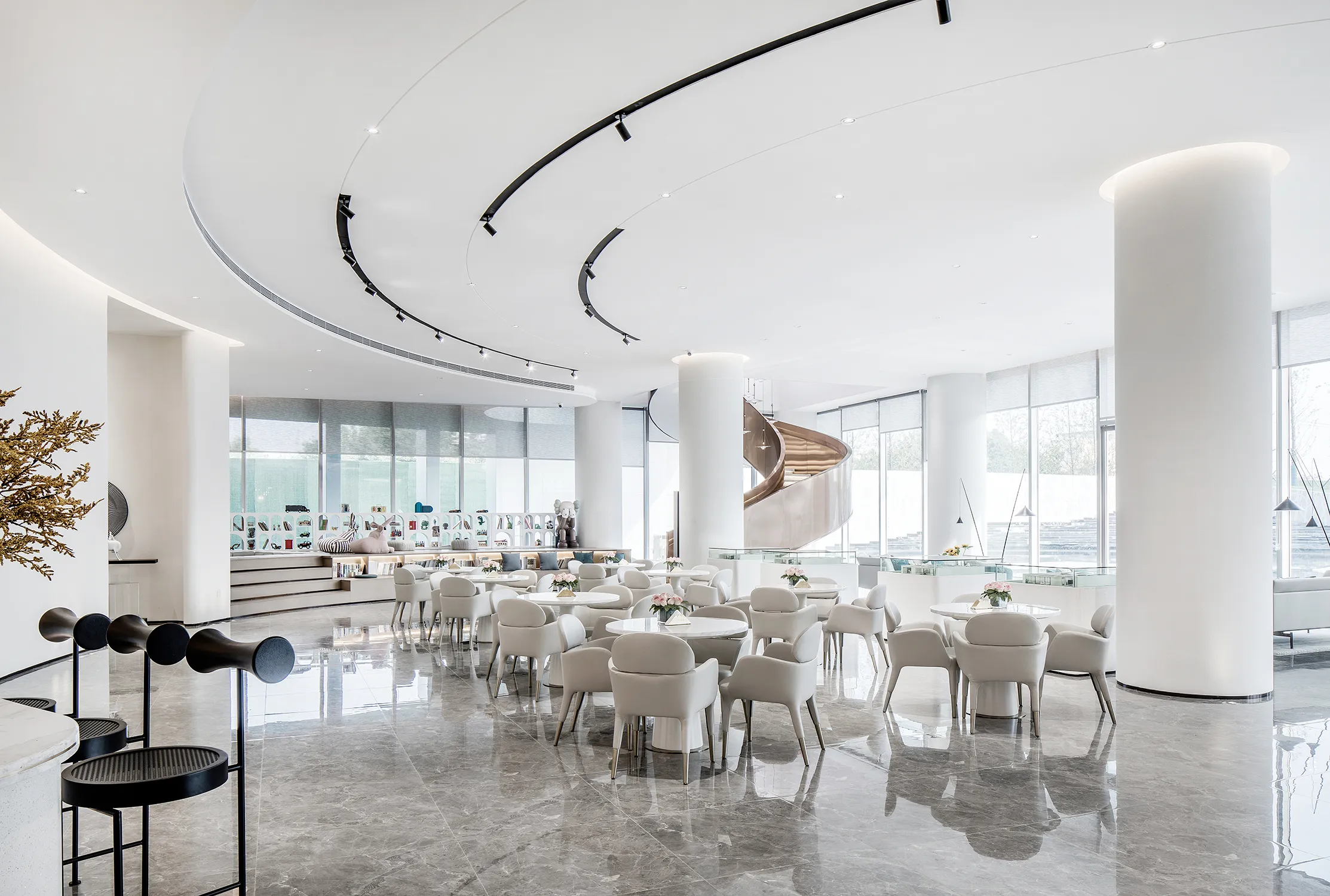 Located in Hefei, China, the Wanxing Lakeview Marketing Center is a beacon of modern living. The center features spacious lounges and dining areas that blend contemporary design with natural beauty. The office spaces are designed to inspire productivity and comfort. This is not just a real estate project; it's a vision of urban elegance.